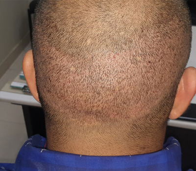4. 15 दिन बाद सिर के पिछले हिस्से की वह जगह जहाँ से FUT - Strip विधि द्वारा बालों की जड़ें निकाली गयी है ।