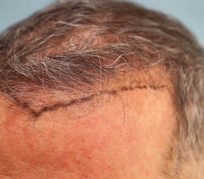 2. त्वचा निकालने के बाद इस भाग को सिल दिया जाता है जिससे कि एक बहुत पतला निशान रहता है जो कि ऊपर के बालों से ढक जाता है ।