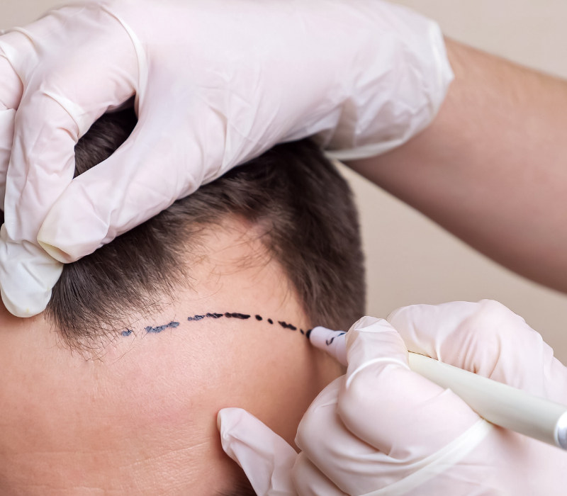 3. FUT/ FUE विधि द्वारा प्राप्त जड़ो का सिर के अगले हिस्से में लगाया जाना